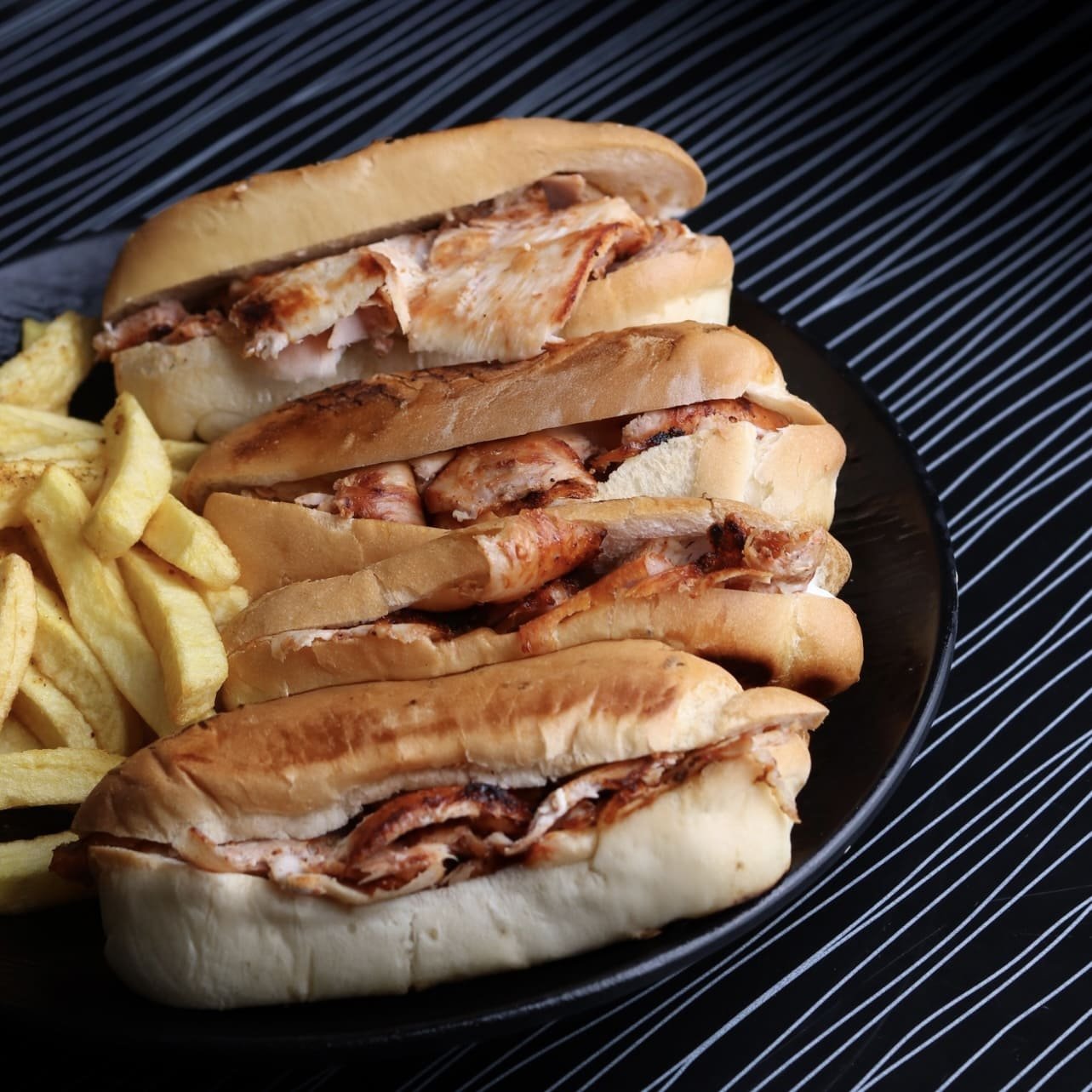 شرائح الشاورما الذهبية داخل خبز الصمون اللذيذ تقدم مع بطاطا مقرمشة وكريم ثوم ومخلل و دبس الرمان