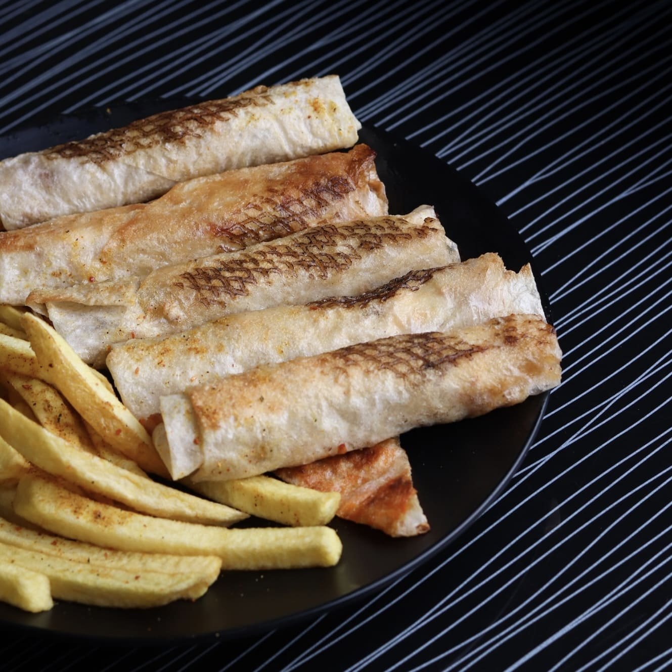 شرائح الشاورما الذهبية داخل خبز الصاج تقدم مع كريم ثوم و مخلل وبطاطا مقرمشة ومحمرة ودبس الرمان